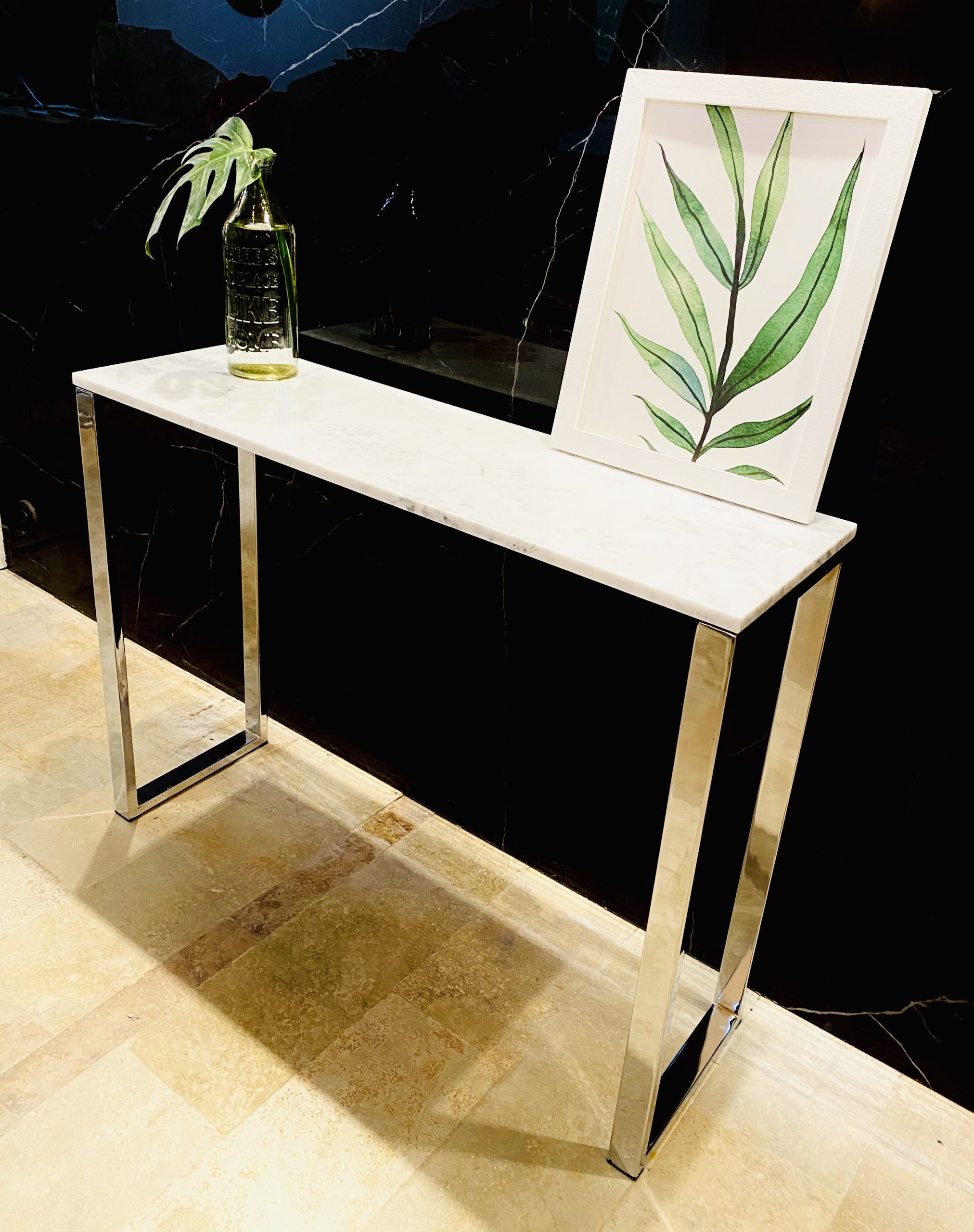 3. Recibidor 100x30cm Alto 77cm Mármol Blanco Carrara. Base cromo. Stock en Sale!